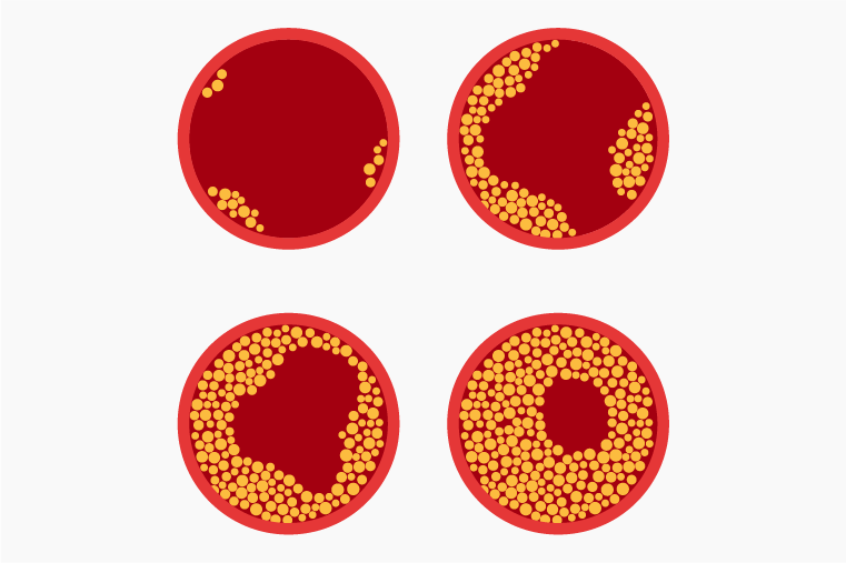 La combinación de grasa y colesterol forma lo que se conoce como “placa”, y hace que las arterias se estrechen o se obstruyan.1